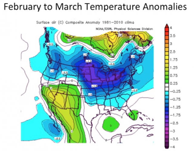 We had warned of a cold winter and in early December were talking about the very cold weather for late December. to early January. Starting around Christmas, old man winter whacked the region with temperature 18F or so below normal. Locations from the midwest to the northeast had 12 of 14 days below zero with bitter wind chills. Furnaces were on constantly.
