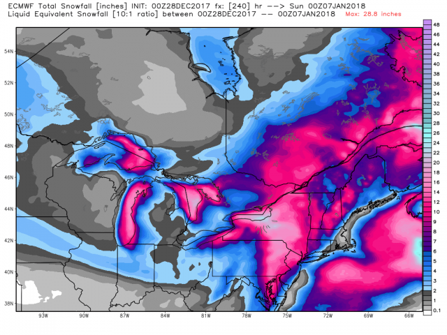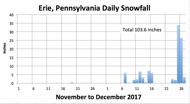 As we showed in the region update, Lake Effect has really kicked in with a record snow blitz in Erie PA with well over 5 feet os snow since just before Christmas.