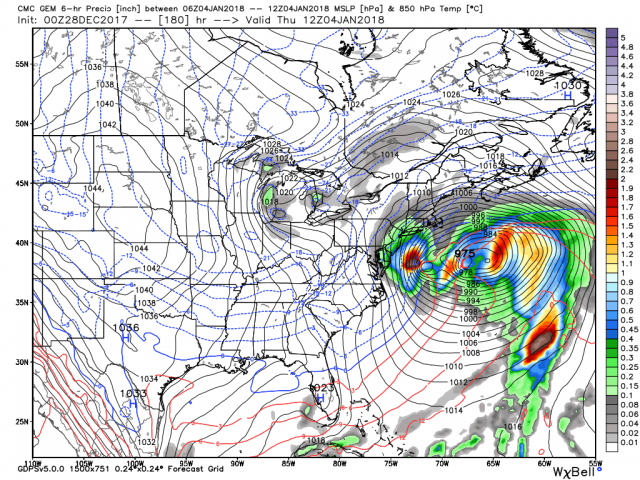 The GEM has the low out to sea but a reflection of the deep upper trough near the coast bring heavy snows to the coastal metros.