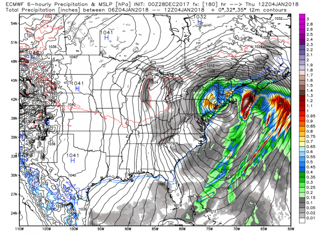 This delivers heavy snows to NYC and inland New England but has a notch of nothing where a shot of warm air with the inland low comes.