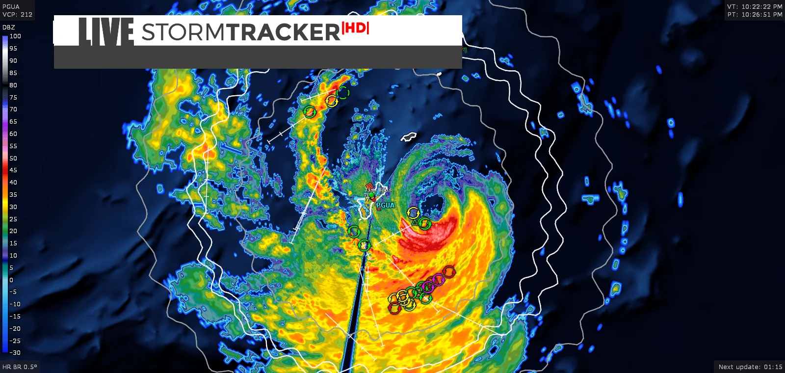 According to the National Weather Service Guam, the storm had Category 4-level winds of about 140 miles per hour just before midnight local time on Wednesday, May 24 as it passed over Guam. Guam International Airport recorded sustained winds of 71 mph and a gust of 105 mph. The storm’s eye passed just north of the island, but the powerful eyewall hit the whole island.