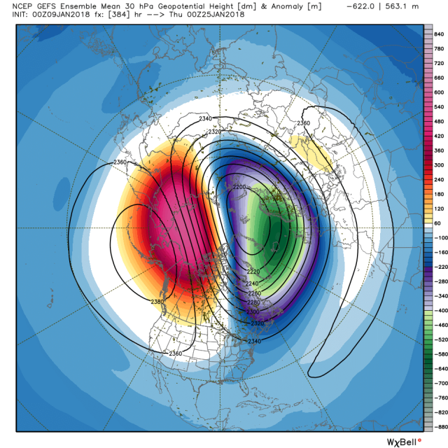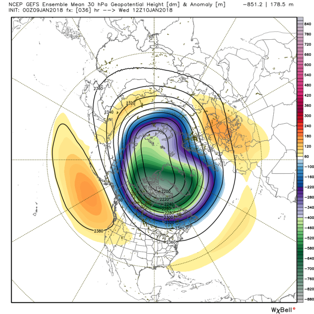 Back in December we saw warming in the stratosphere develop in the western arctic and Alaska.