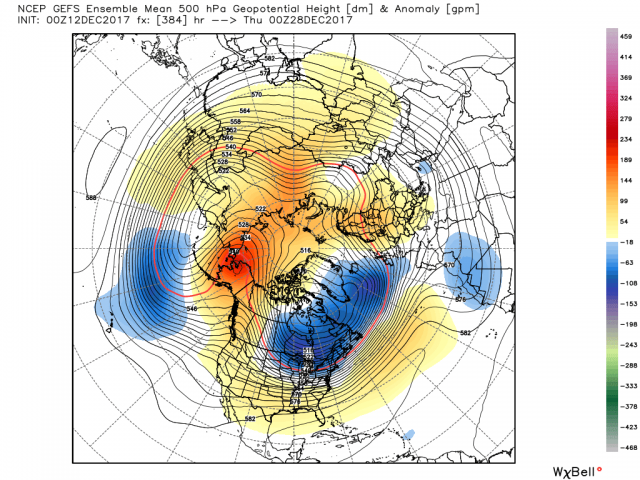 By the holiday it enveloped northwest North America and the western arctic and had opened us up to invasiions of arctic air.